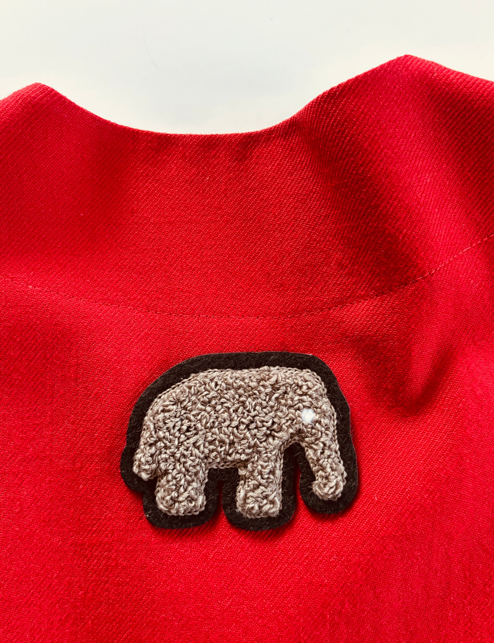 Chenille Lfant patch on the back neck line